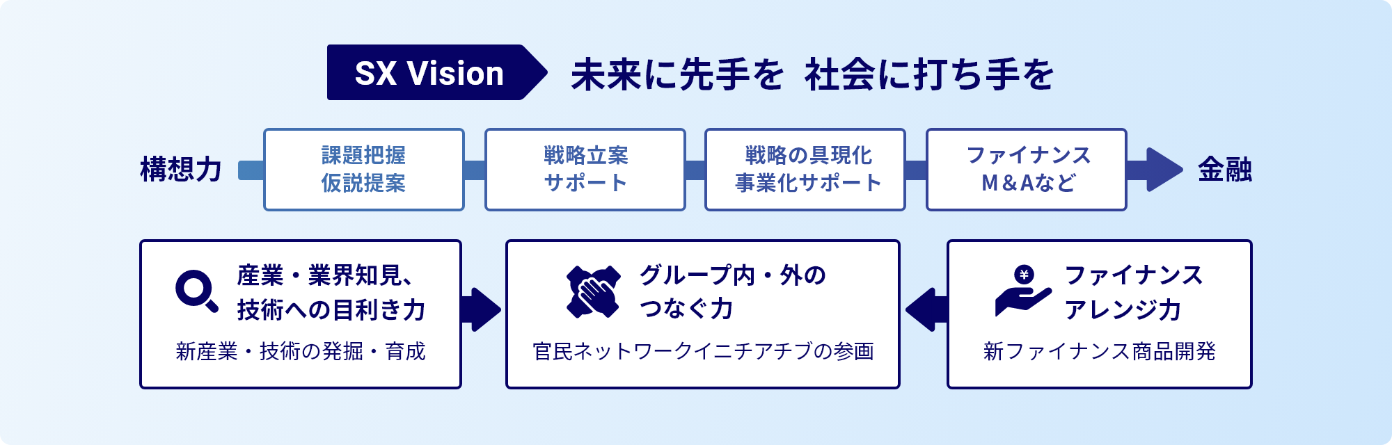 〈みずほ〉は、その知見と金融・非金融のサービスをかけあわせ、サステナビリティの推進と、イノベーションの創出に取り組んでいます。