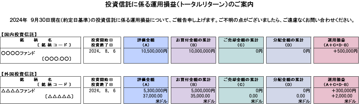 「投資信託に係る運用損益(トータルリターン)のご案内」の見方